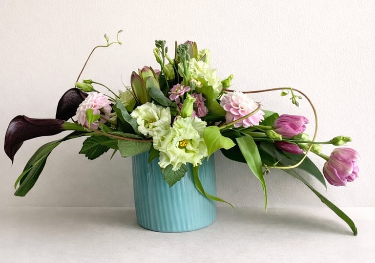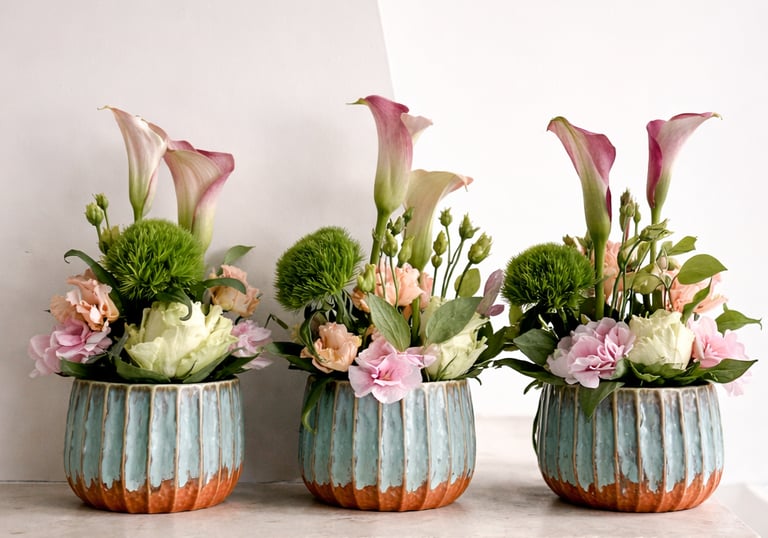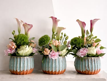 Asztaldíszek - Csokrok - Cserepes növény összeültetések idény virágokkal