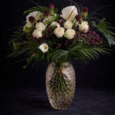 A kompozíciókban a színek, formák és textúrák harmóniája kap főszerepet. A romantikus csokrok kifinomultak és lágyak, a búcsúztató darabok visszafogott eleganciával fejezik ki az érzéseket.