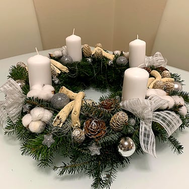Adventi koszorúkat, asztaldíszeket, gyertyakompozíciókat és girlandokat készítünk, klasszikus vagy modern stílusban, az adott térhez igazodva.